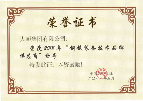 星辉平台公司荣获2018年“中国钢铁装备技术品牌供应商”称号