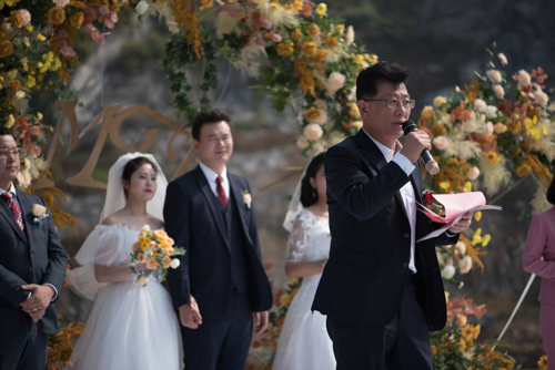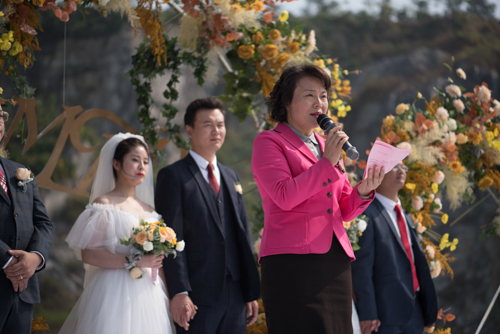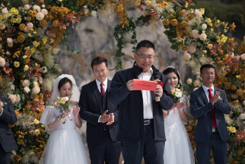 星辉平台党委书记、副总经理朱炳安为三对新人证婚