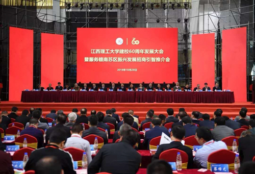 一甲子春华秋实,六十载桃李天下。2018年10月28日上午,江西理工大学建校60周年发展大会暨服务赣南苏区振兴发展招商引智推介会在新体育馆隆重举行,来自海内外的嘉宾、校友2000多人参加庆祝大会。
