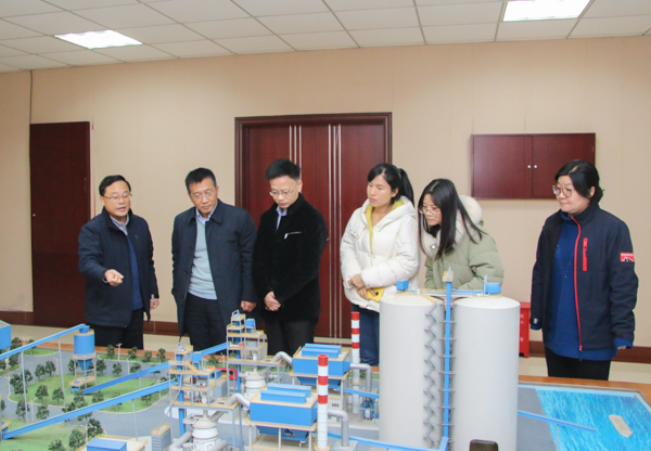公司纪委书记、工会主席曾巍为客人们介绍工程项目沙盘
