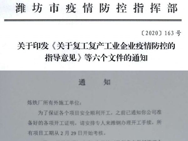 随着全国的疫情逐渐得到有效的控制,全国上下开始有序的复工复学,业主方潍坊特钢集团有限公司也根据潍坊市政府文件要求潍坊进行3月18日复产复工。