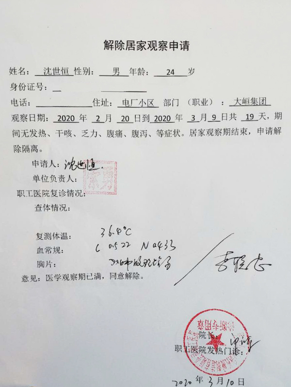 【概要描述】石横特钢隔离抗疫复工纪实(星辉平台石横特钢项目部沈世恒) 2月19日,全国抗疫之时,星辉平台石横特钢项目部接到甲方通知,要求立即派管理人员返厂工作。经过公司及项目部慎重考虑,决定沈世恒与龙键为首批返厂人员。2月20日,我们分别从广东南通及辽宁朝阳出发,返回山东肥城石横现场。 到达石横特钢,办理完体检等手续后,项目现场给我们安排了集中隔离宿舍,虽然屋里只有一张桌子两张床,但好在有个温暖的小家。