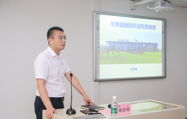 公司财务总监、资产财务部部长赵则铭为新员工讲授财务制度