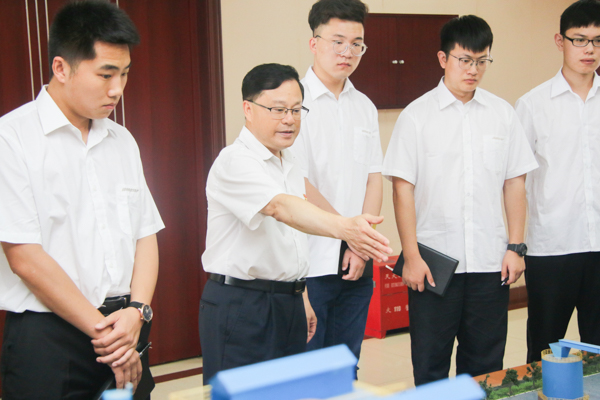 公司纪委书记、工会主席曾巍为新员工们介绍企业历史展馆