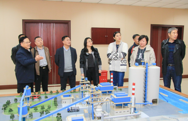 纪委书记、工会主席曾巍为客人介绍企业展馆、工程沙盘