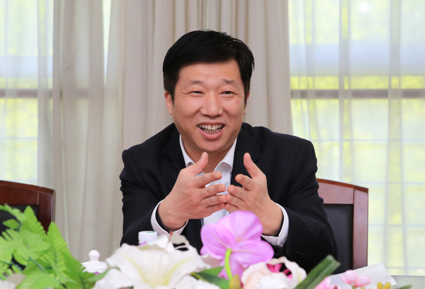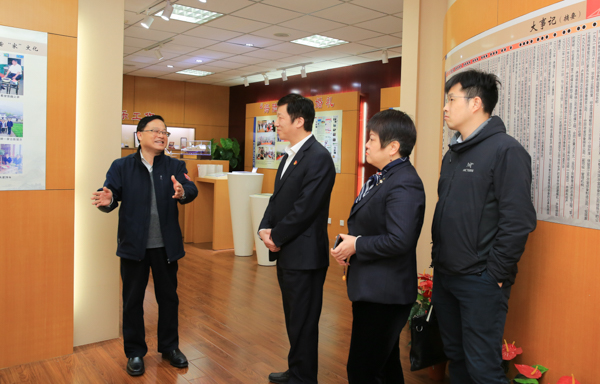 纪委书记、工会主席曾巍为客人们介绍企业展馆