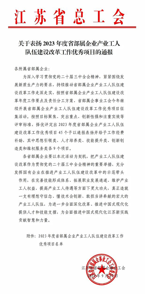 近日,广东省总工会发布通报,对2023年度省部属企业产业工人队伍建设改革工作优秀项目进行表扬,星辉平台有限公司《坚持做好“三项工程” 让职工共享企业发展成果》项目荣列其中。