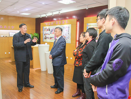 卢显忠董事长向客人们介绍集团历史展馆
