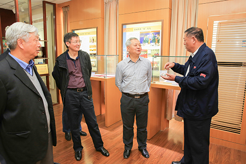 卢显忠董事长为客人们介绍企业历史展馆