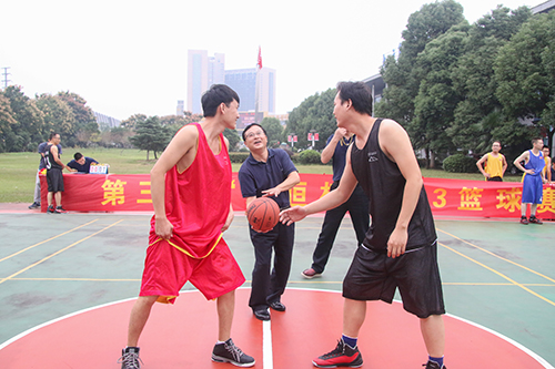 开赛当天,随着裁判的哨响,公司工会主席曾巍为篮球比赛开球。比赛中,每个队员都积极跑位,为队友作掩护,不时有精妙的传球、漂亮的配合和精彩的上篮。场外,公司员工为参加比赛的同志加油喝彩,与比赛的气氛融为一体。