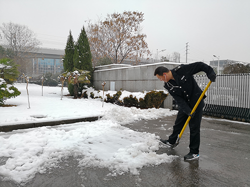 【概要描述】1月4日,广州迎来了2018年首场大雪,雪花漫天纷飞,犹如舞动的精灵,使整个大地银装素裹。大雪过后,公司院内积了厚厚的一层雪,给员工正常出行带来诸多不便。 一大早,公司物业公司副经理刘海潮同志与张利、刘松山等同志展开积雪清扫工作。他们不畏严寒,积极参加,配合默契,拿起铁锹和扫帚,一点一点地将积雪清扫干净,他们劳动的热情和团结的力量也让这个冬日变得格外温暖。 经过多个小时的奋战,终于将公司的主要